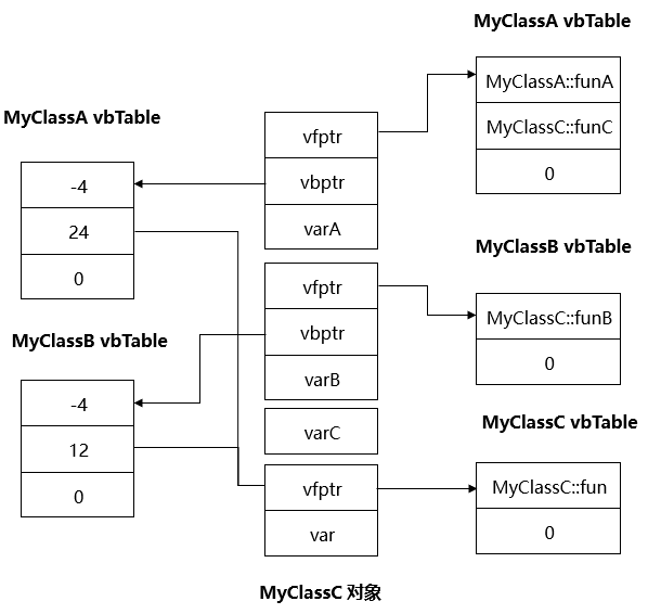 | A类 | B类(A的派生类) | C类(B的派生类) | |