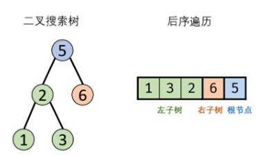 - 左子树区间 [i,m-1] 内的所有节点都应 < postorder[j] 。而上面 划分左右子数 步骤已经保证左子树区间的正确性,因此只需要判断右子树区间即可。