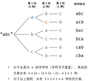 我们可以通过 字符交换 ,先固定第1位字符(n种情况)、再固定第2位字符(n-1种情况)、……、最后固定第n位字符(1种情况)。