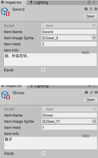 那么我们可以通过自定义Unity文件,创建我们需要的Item和Inventory文件,用来保存游戏物品信息和背包信息。