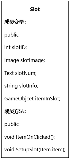 slot的作用是显示背包里的物品的,包括物品图片、持有数量,并且当鼠标点击物品后,会在descriptionTxt中显示其详细介绍。