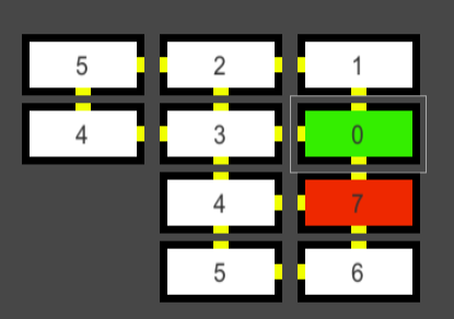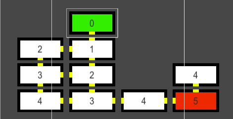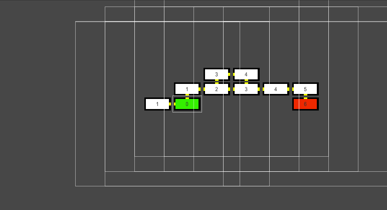 白色部分为房间主体,黄色部分为房间的门,房间上的UI文本用于显示初始房间到这里的步数(方便调试)。